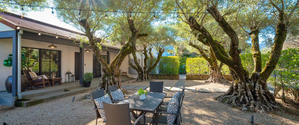 This stylishly furnished Contemporary gem designed by esteemed architect Shay Zak on St. Helena's Westside offers the perfect balance of in-town and wine country living. The beautifully private courtyard greets you with mature olive trees, providing a perfect canopy for entertaining, with a porch ideal for unwinding or reading. The home sits blocks away from St. Helena's main street, shops, and restaurants while only steps from vineyards for your daily enjoyment.